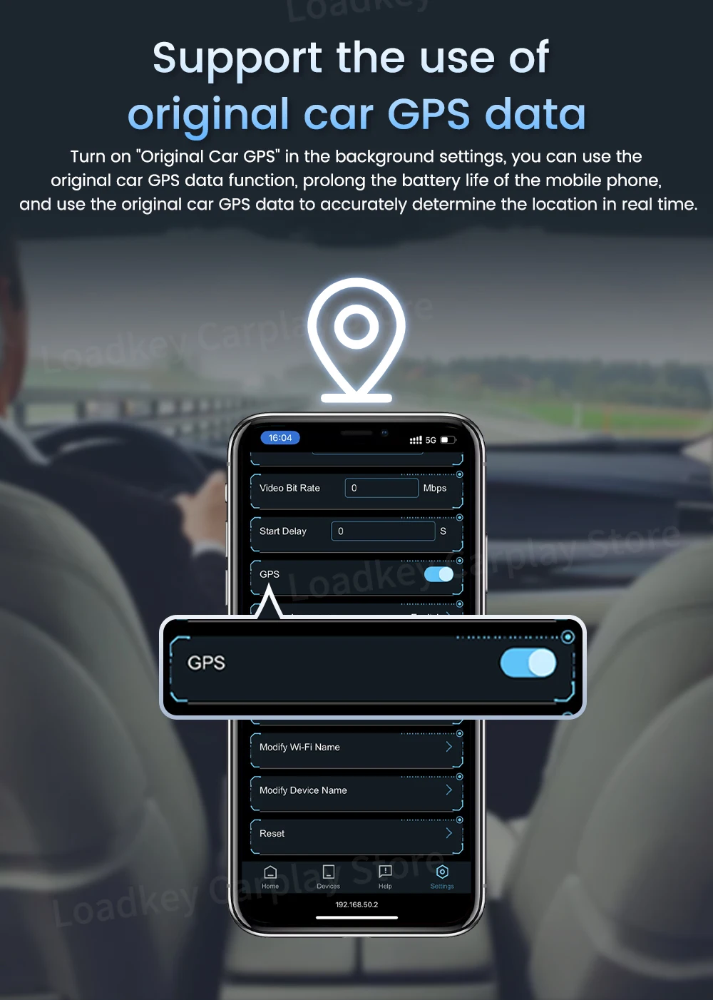 Turn on “Original Car GPS” in the background settings, you can use the original car GPS date function, prolong the battery life of the mobile phone, and use the original car GPS date to accurately datermine the location in real time.